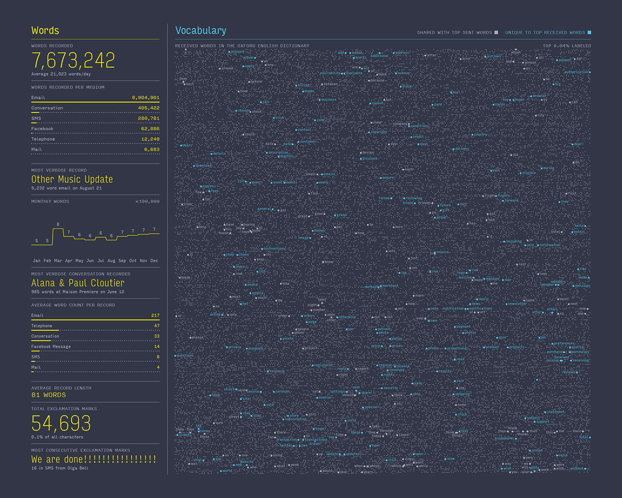 By night, I read between the lines of my own life and turn what I find into visualisations: concerts, travel routes, conversations that were never meant to be heard. I'm also trying to become a polyglot.