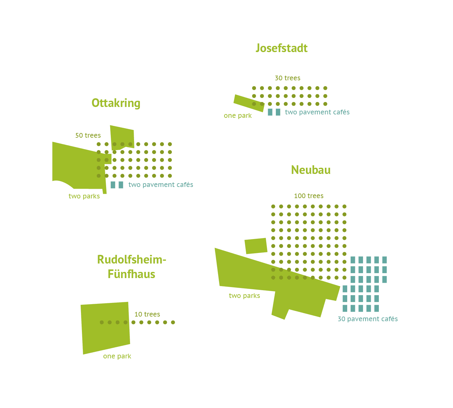 Collected three layers of data: green space (parks, trees, cafés), traffic (soundscapes), and buildings (façade colours)